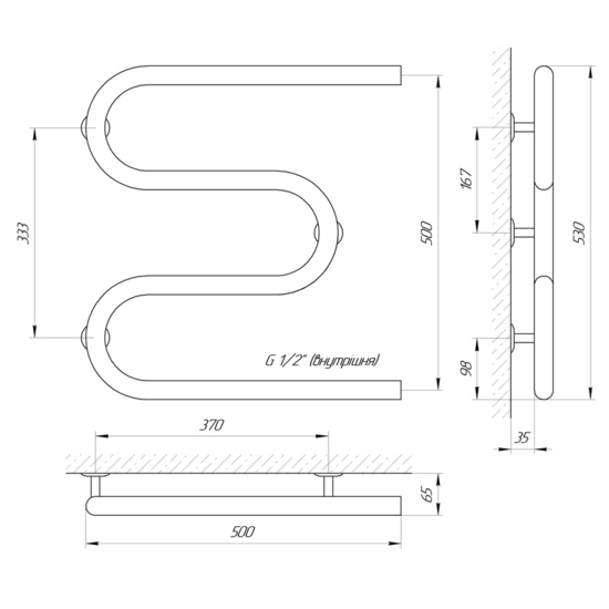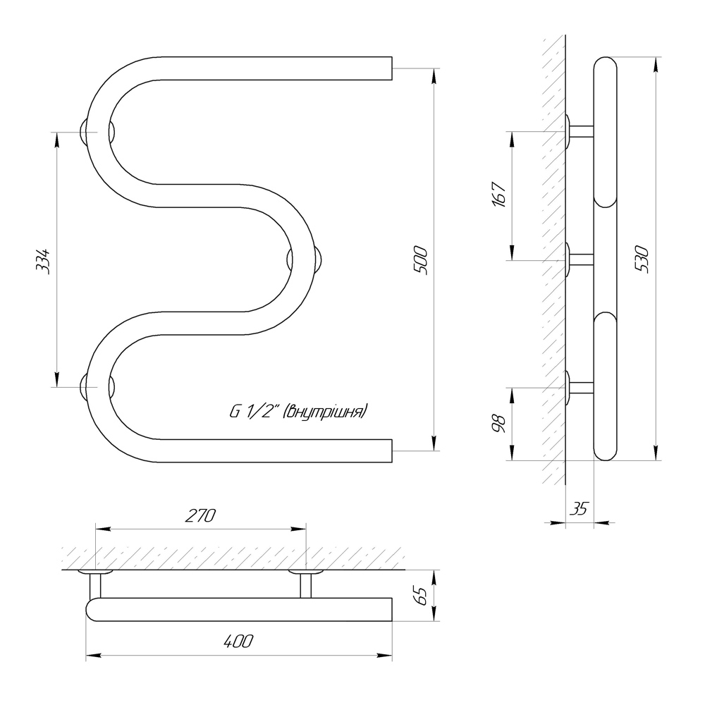 Полотенцесушитель водяной Laris Змеевик 30 РС3 межцентровое расстояние 500 мм 1/2″ нержавеющая сталь
