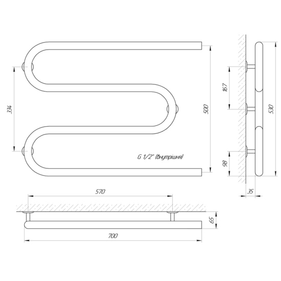 Полотенцесушитель водяной, модель — Laris Змеевик 30 РС3 межцентровое расстояние 500 мм 1/2″ нержавеющая сталь изготавливается из зеркально отполированной высококачественной нержавеющей трубы и предназначен для обогрева ванных комнат и сушки полотенец и белья.